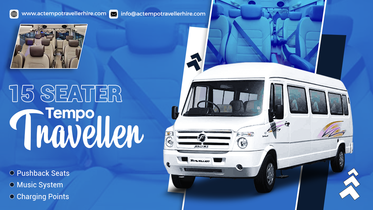 Delhi is a metropolitan city of running cars, metros, and people. To get a sigh of relief or relaxed moment, you need a break or trip to peaceful places like Manali, Shimla, Nainital, or any other hill station, book a tempo traveller. Imagine a worry-free ride with just sit back and collecting wonderful memories. Leave all additional things on us as toll tax, parking, route maps, best route, traffic, and navigation. Hire 15 seater tempo traveller for family vacations as it promotes quality family time. Everyone stays together, shares experiences, and creates lasting memories, fostering stronger bonds. Not only for family excursions, it is good to go for business purposes for assured convenience and privacy. It acts a mobile workspace, allowing colleagues to discuss strategies, brainstorm ideas, or prepare for meetings while on the move. Ride your way with 15 seater tempo traveller driven by professional and friendly chauffer ensures a safe and comfortable journey. Hiring a 15 seater tempo traveller is advisable in comparison to rent different cars. It saves time of coordinating separate vehicle for different groups as well as it is pocket friendly.