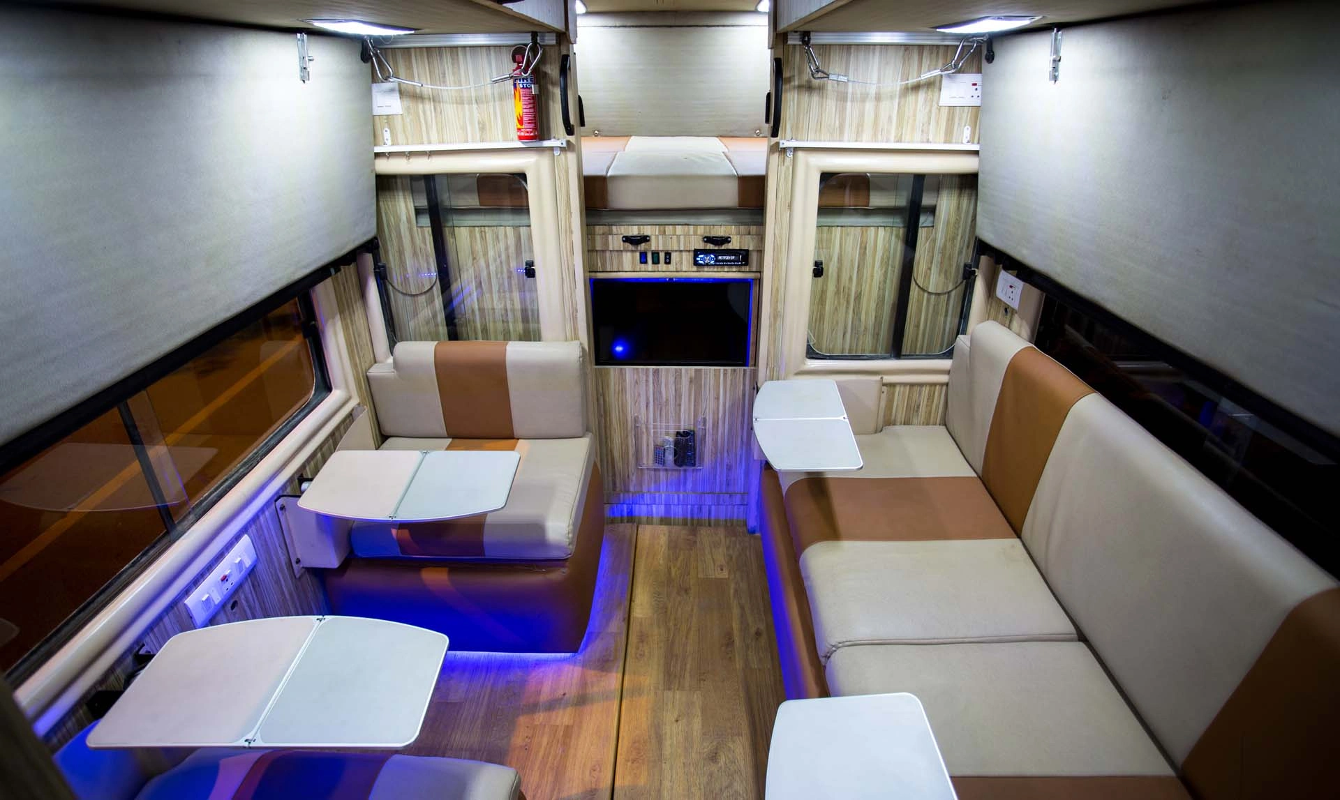 Travel with one more step ahead of the luxurious trip. When you think of luxury maybe you would be limiting yourself with some nice interior, Air conditioning and some short of music system. But with Vanity Van on Rent, you can get a full-featured and beautiful interior with best facilities like staying in a resort. You will feel like you are travelling in a fully furnished and equipped home. You will find all the comfort that you can expect like sofa, bathroom, TV, washroom, kitchen, beds, and crockery. But before moving further let us understand about Vanity Van.